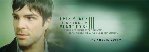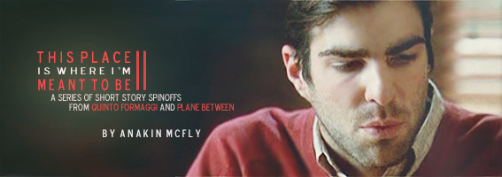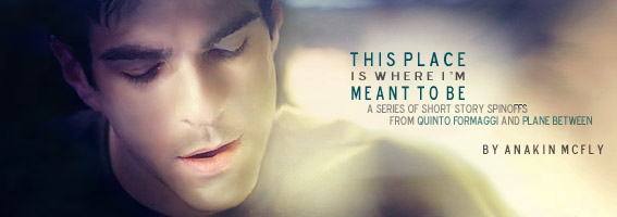 Graphics for a series of fan fiction novels I wrote: the first was Quinto Formaggi (which had terrible graphics that I'm not including here), followed by the sequel Plane Between that had a banner heading each chapter, and then the spin-off short-story collections This Place is Where I'm Meant to Be parts 1 to 3.